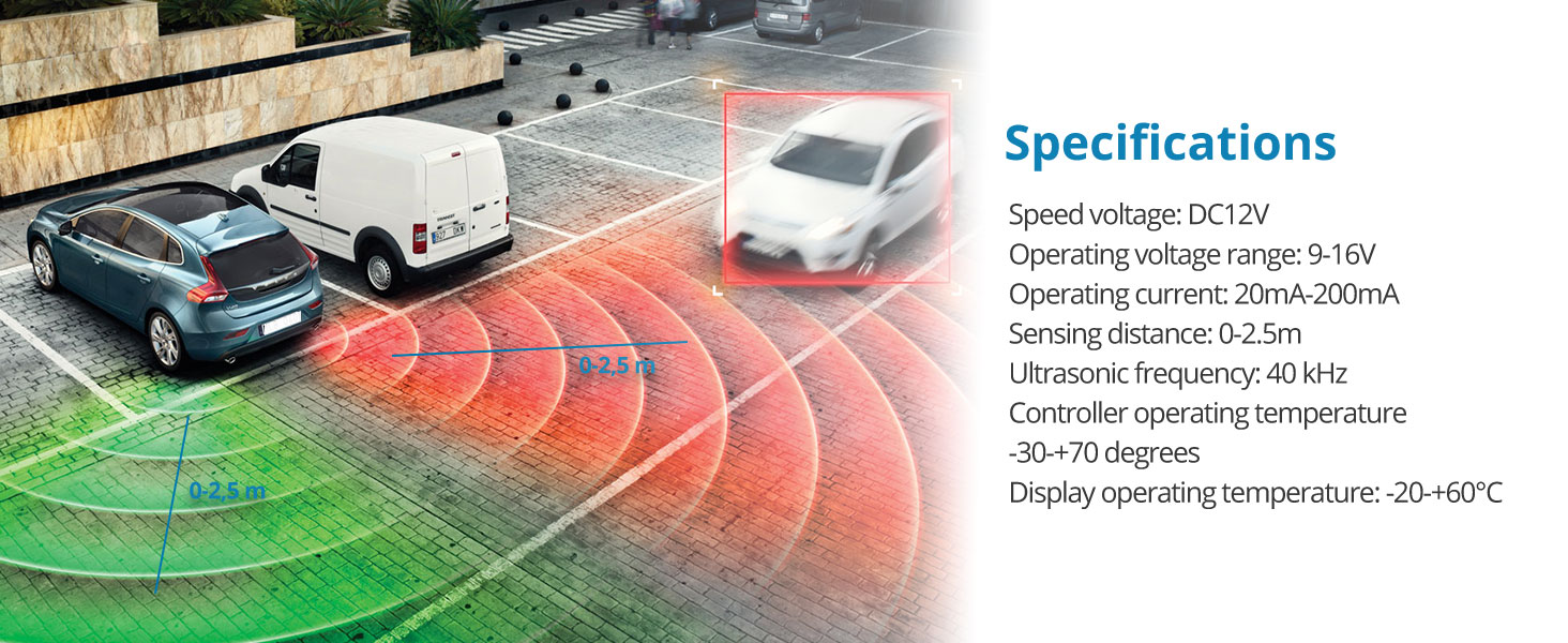 AUTOUTLET DC 12 V Car Rear Reverse Parking 4 Sensors Reversing Audio Buzzer Alarm Kit LCD Display, Silver